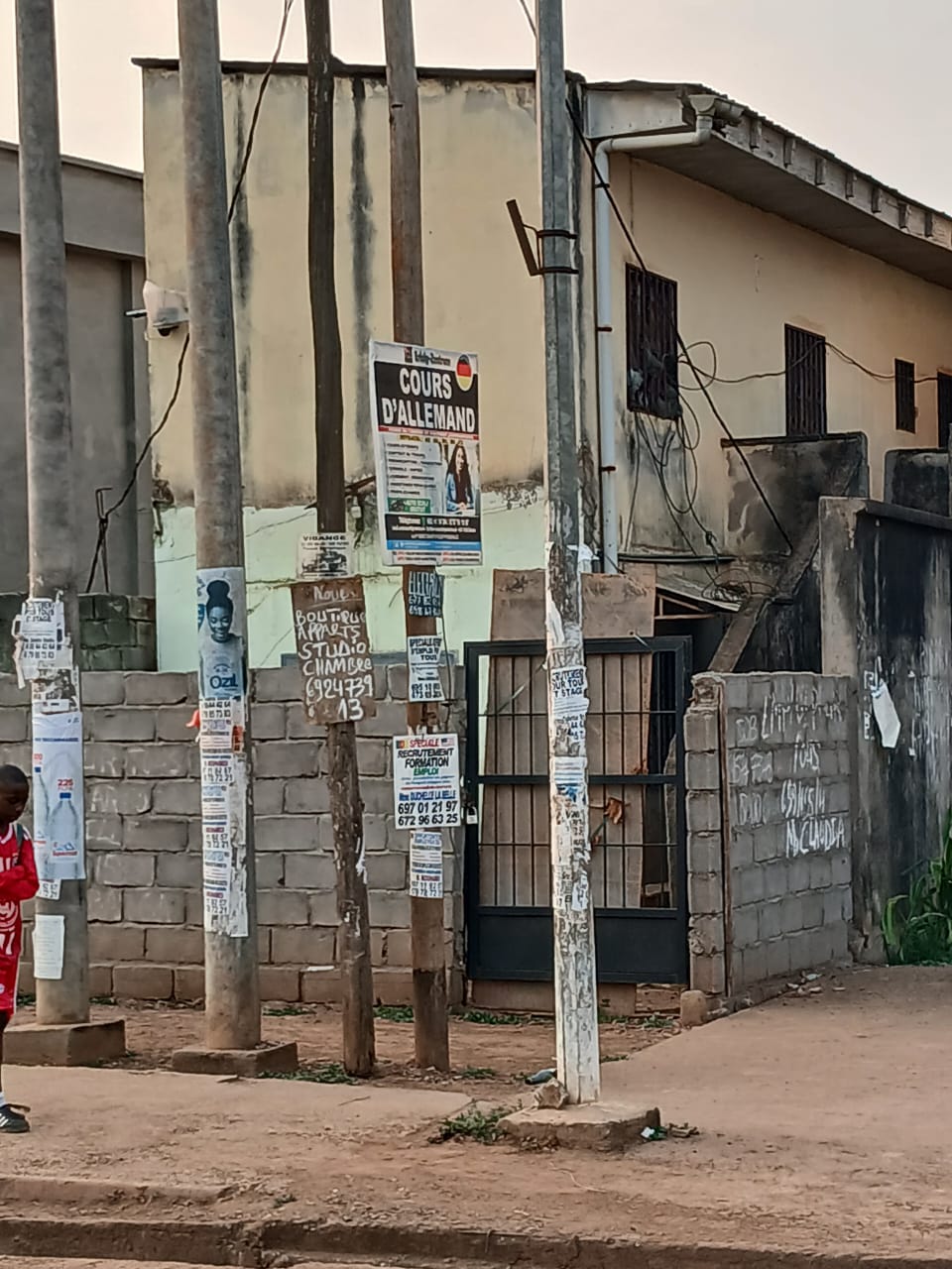 C'est un immeuble de R+1, bordure de la route principale.