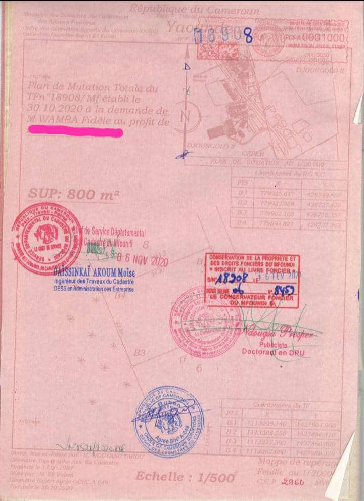 › Terrain à vendre : Elig-Essono (125 000 Fcfa/m²) 800 m²