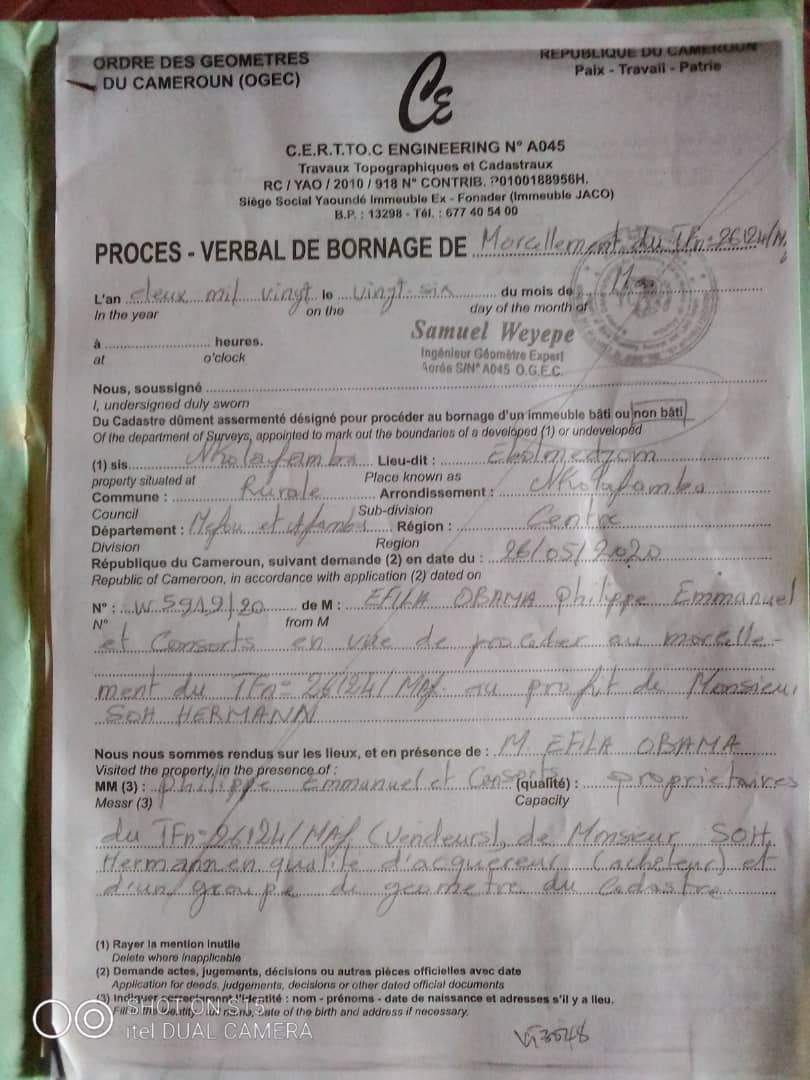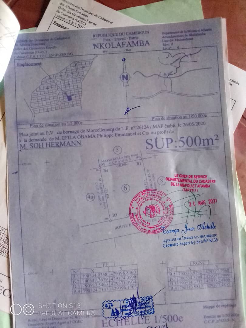 Terrain à vendre : Nkouabang (11 500 Fcfa/m²) 500 m²