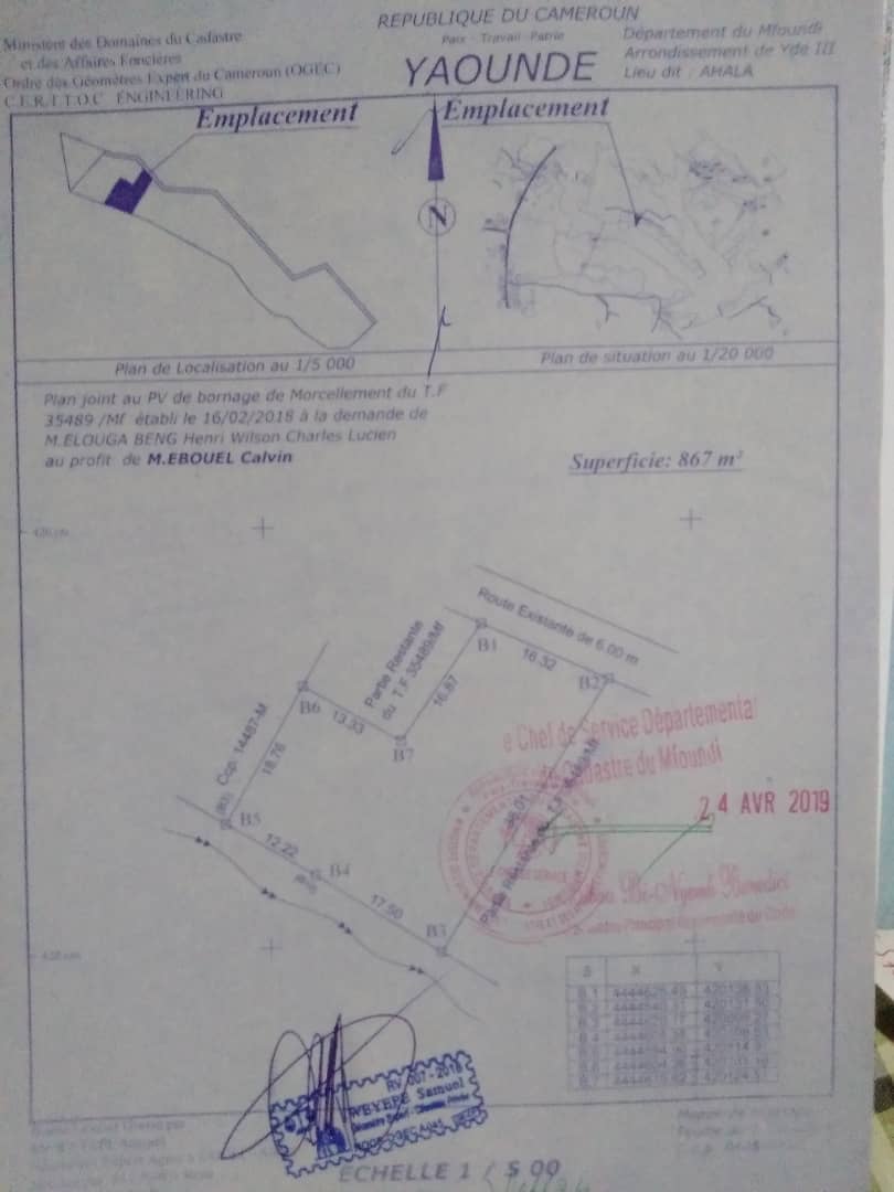 Terrain commercial à vendre : Nsam (25 000 Fcfa/m²) 500 m²