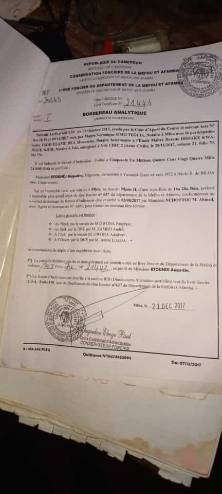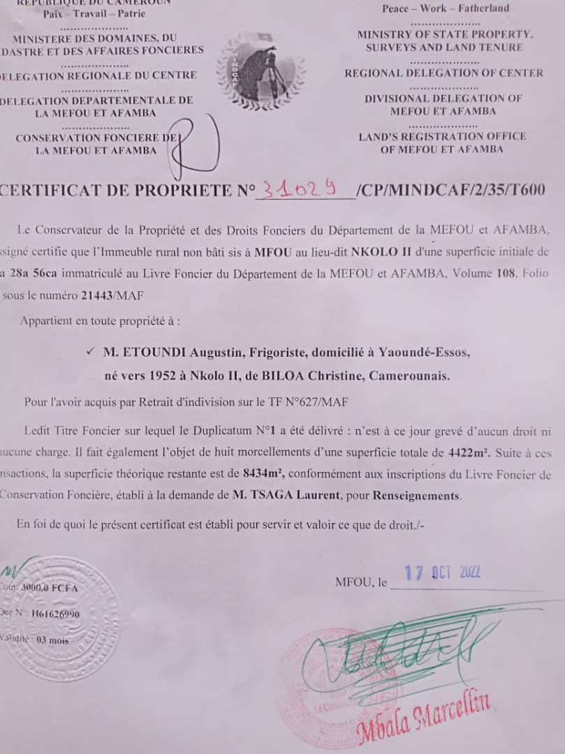 Terrain à vendre : Nkouabang (25 000 Fcfa/m²) 500 m²