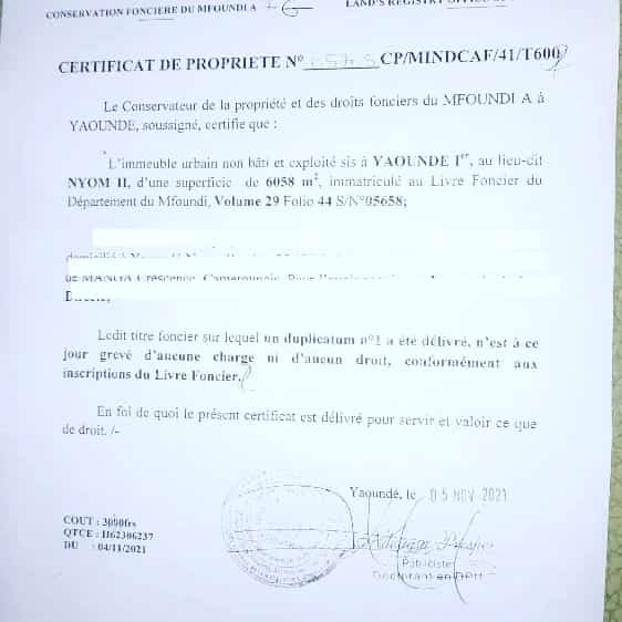 › Terrain à vendre : Nyom (13 500 Fcfa/m²) 330 m²