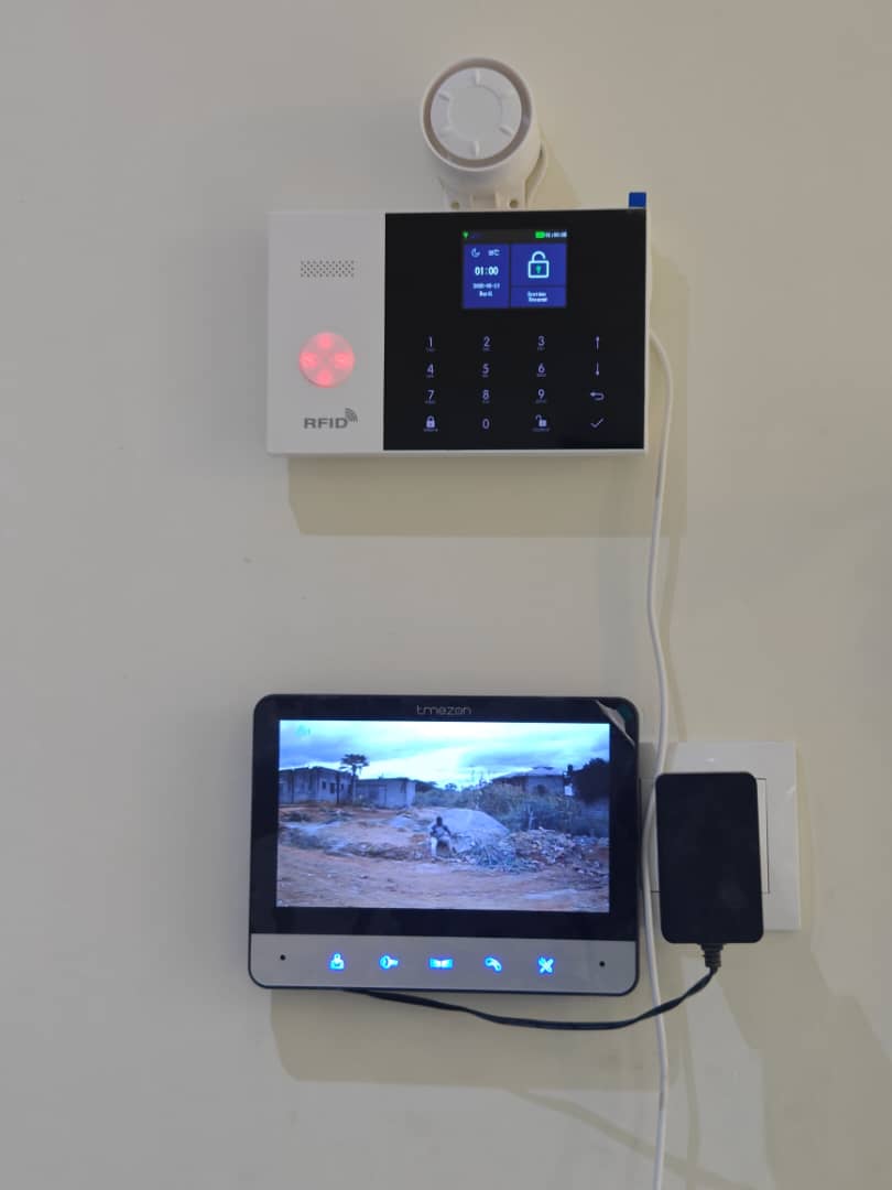 Avec un système d'alarme, caméras de surveillance, détecteur d'incendie, climatisation, forage, eaux chaudes et barrière.